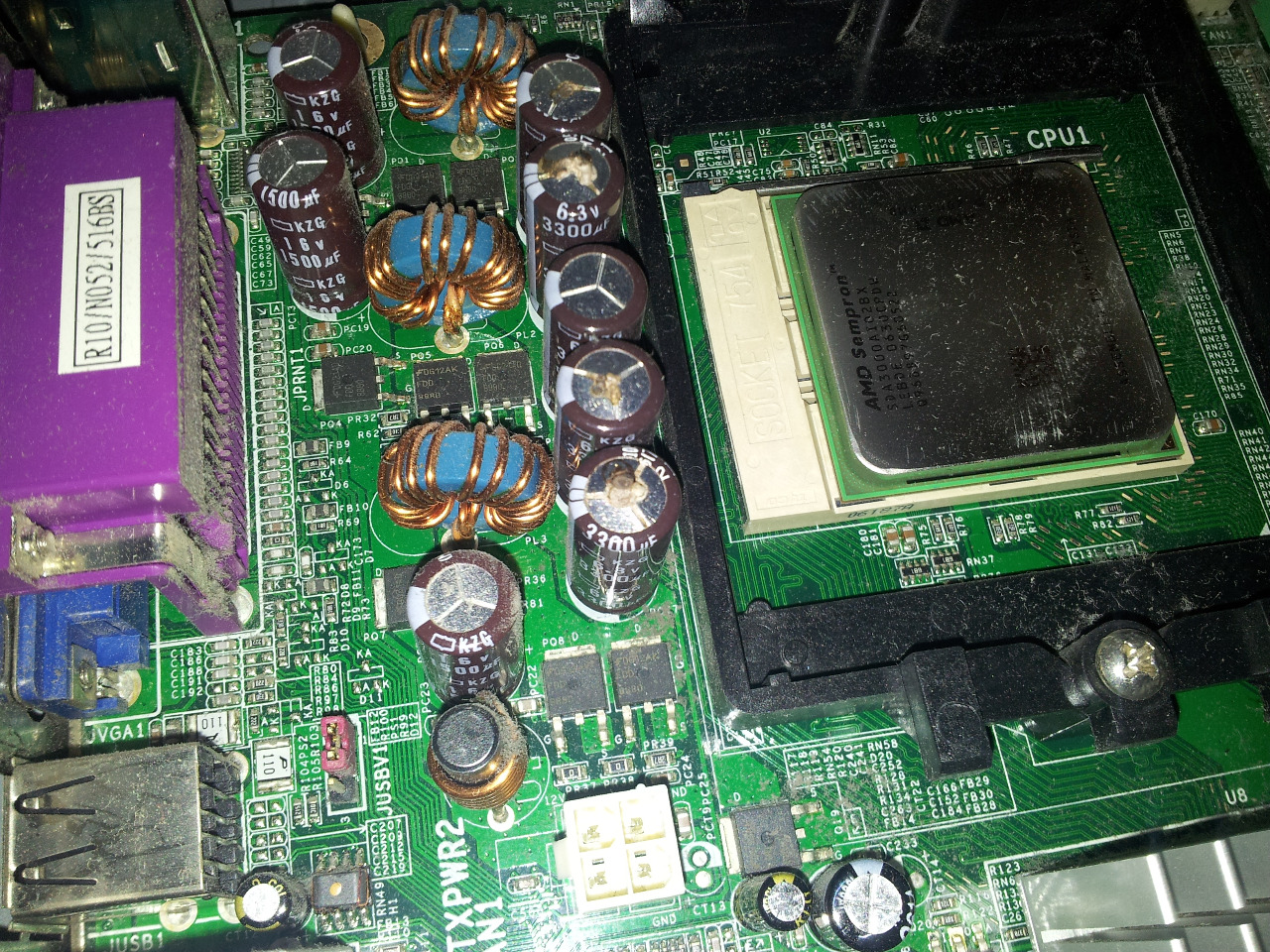 Reparamos placas base con condensadores inflados, esto puede provocar que el ordenador no arranque o que se apague cada poco tiempo.